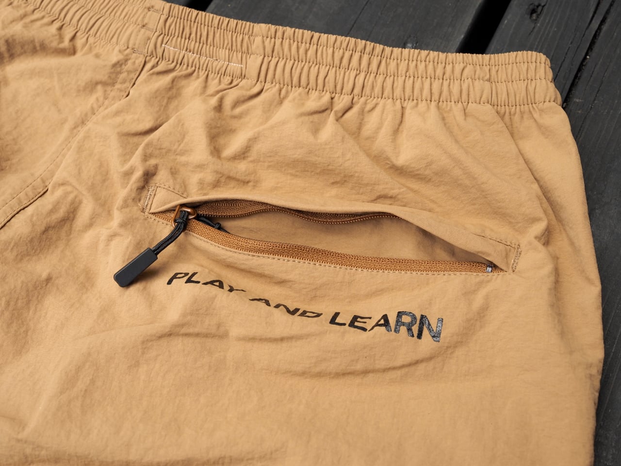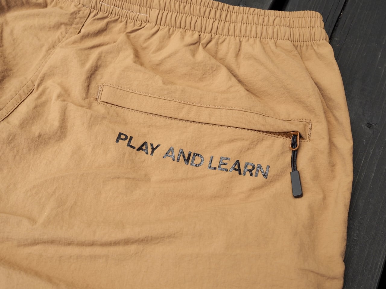 右お尻のジップ下に「 PLAY AND LEARN」をプリント(遊んで学べみたいな意味)