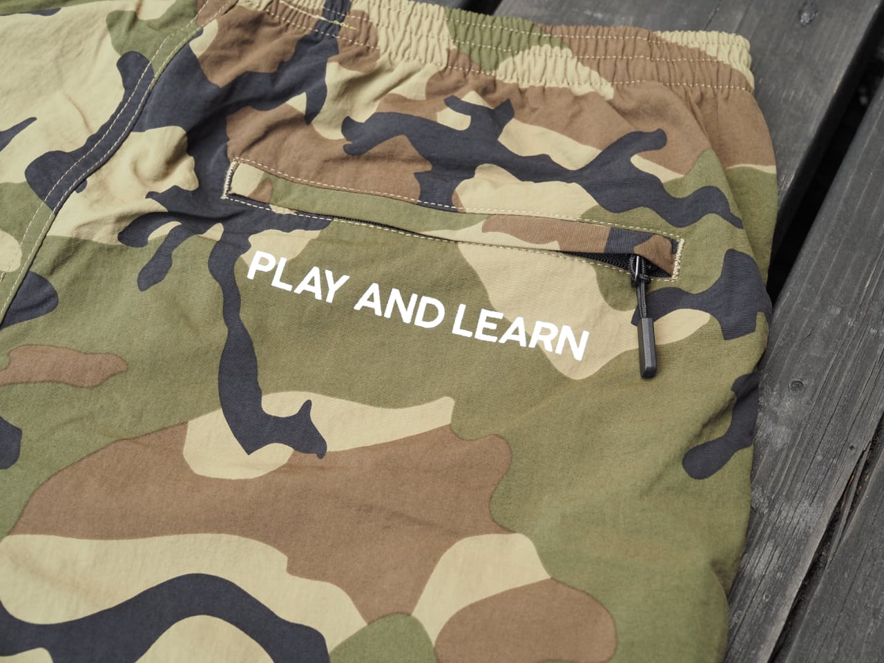 右お尻のジップ下に「 PLAY AND LEARN」をプリント(遊んで学べみたいな意味)