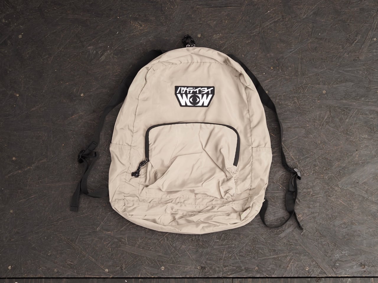 「バカデイタイ」ワッペンを付けた気軽に使えるデイバックです
