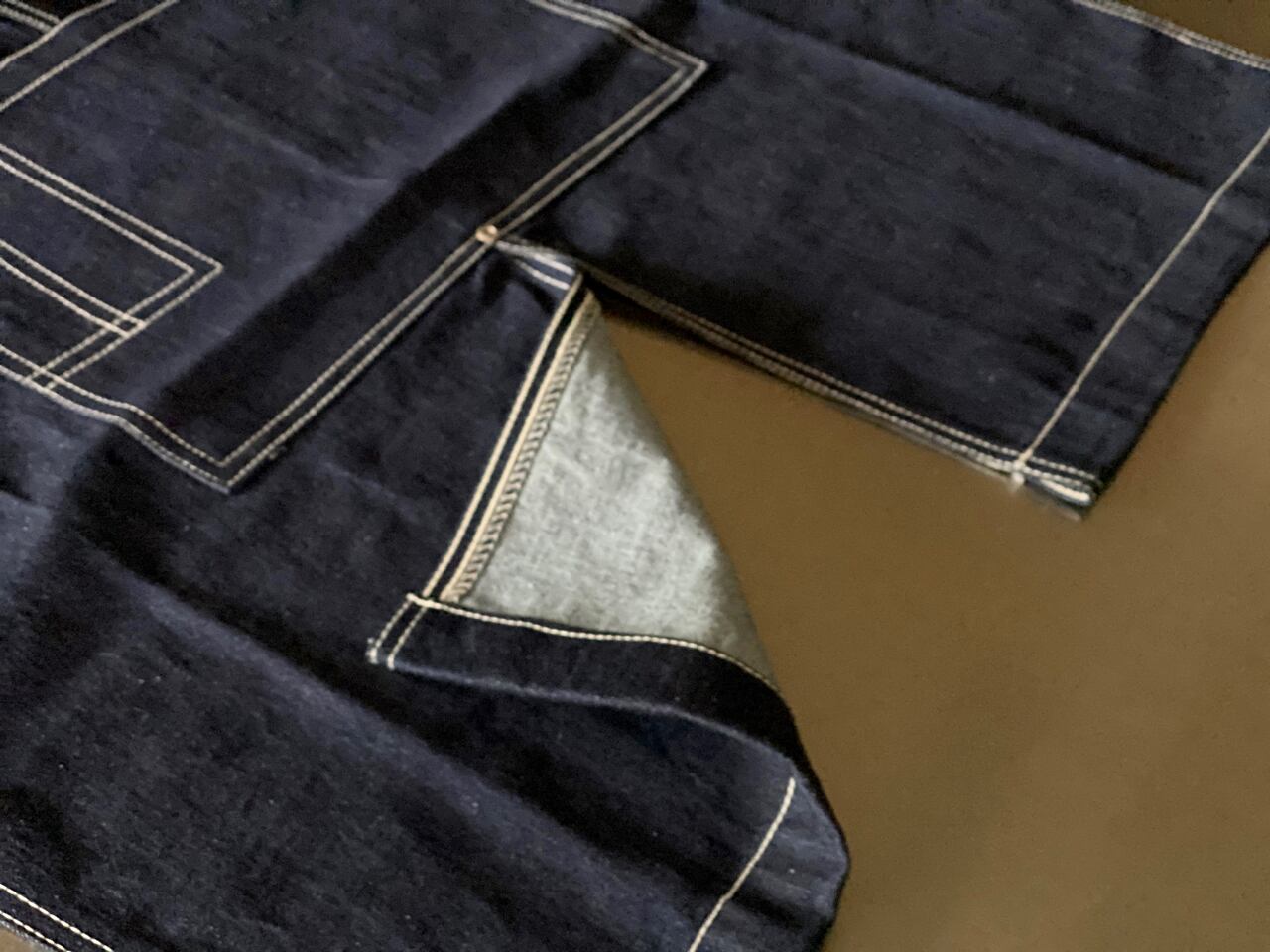 ダークインディゴの生地はデニム素材です