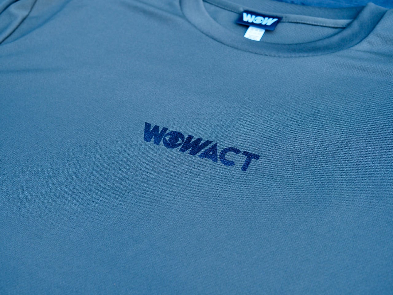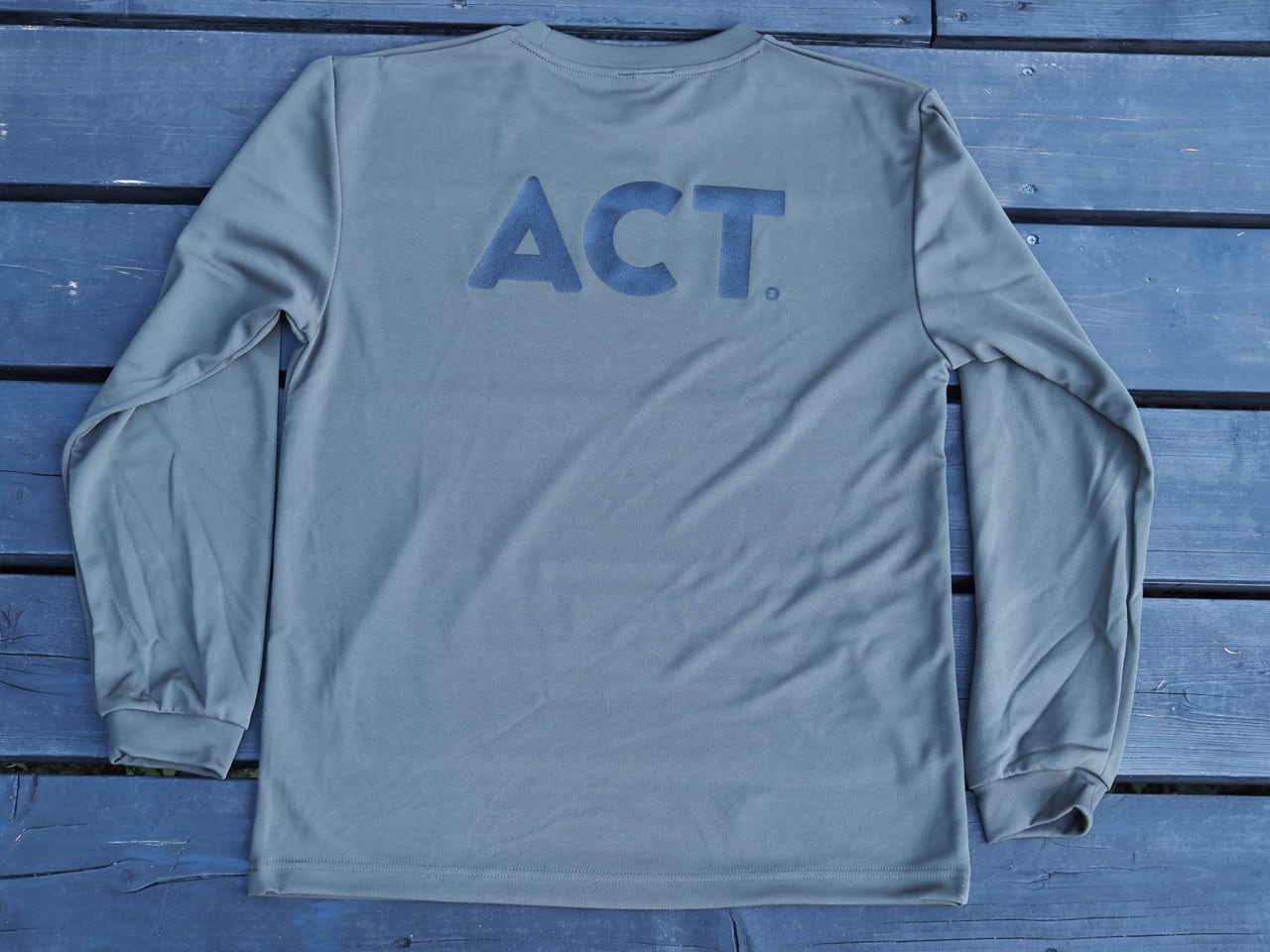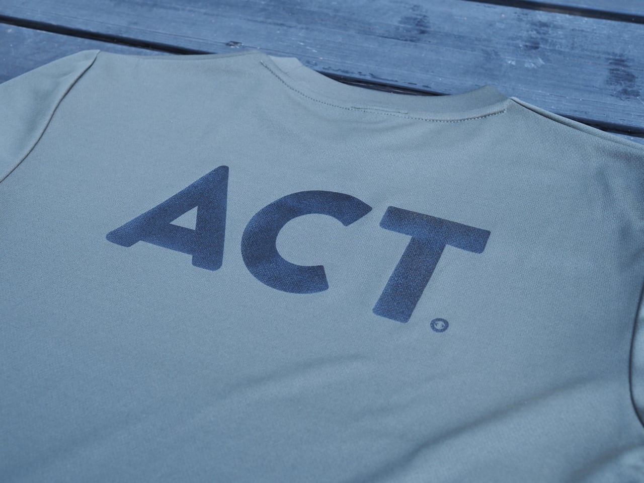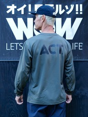 WOW ACTの控えめなロゴをフロントに、バックにはACTロゴを大胆にプリント