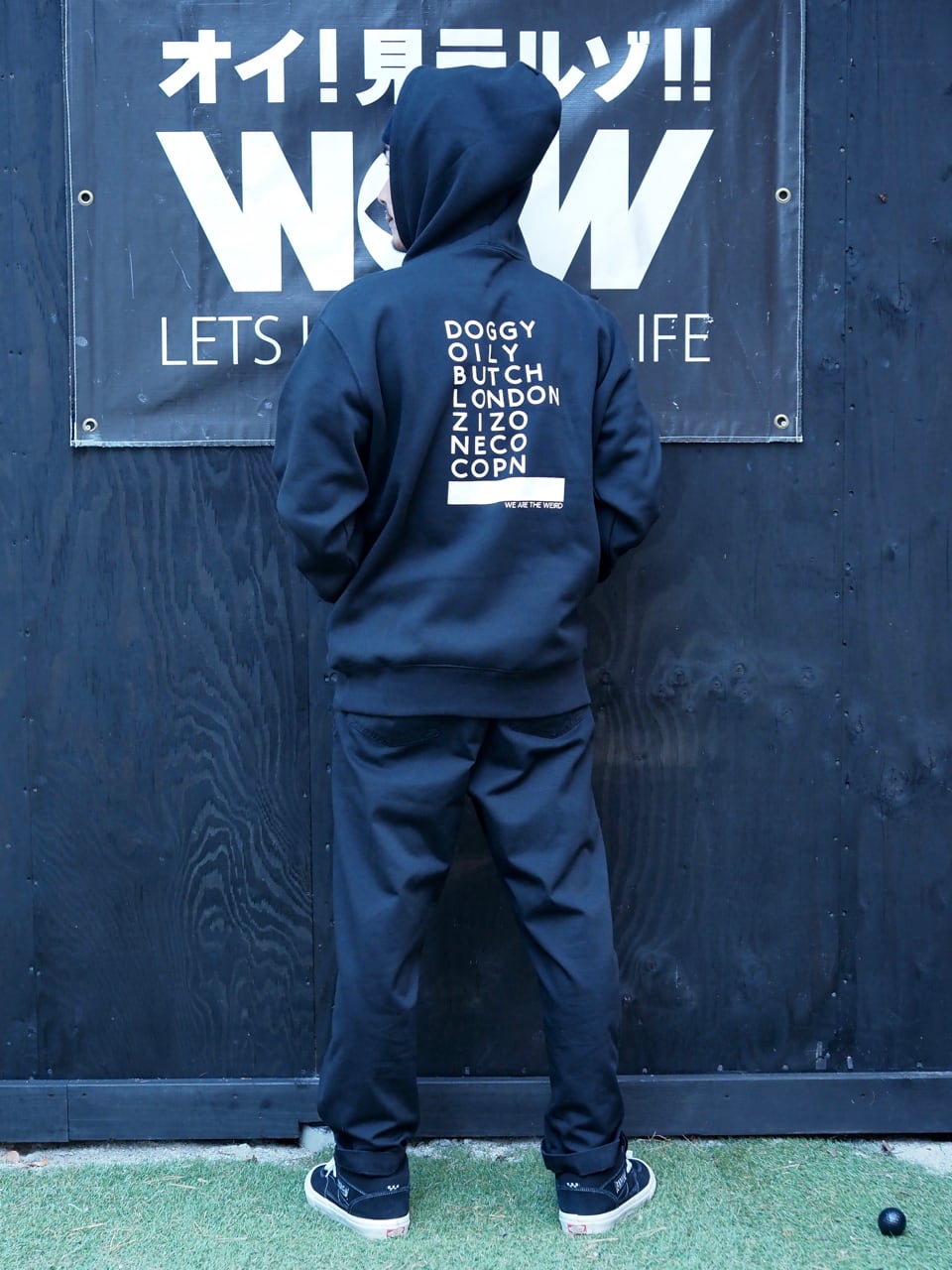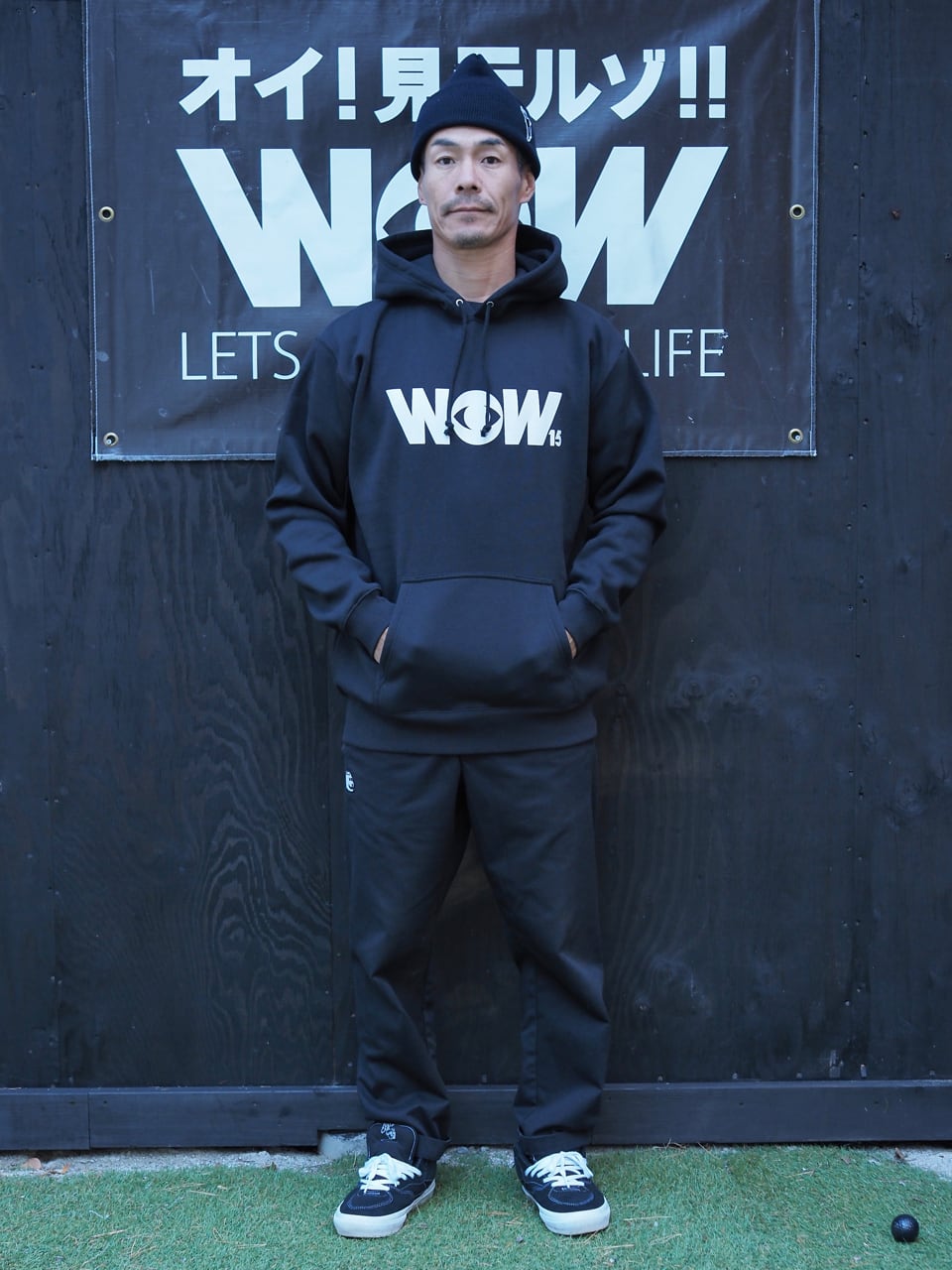 WOWSTOREの定番裏起毛パーカーを使っていて暖かいしグッドシェイプです