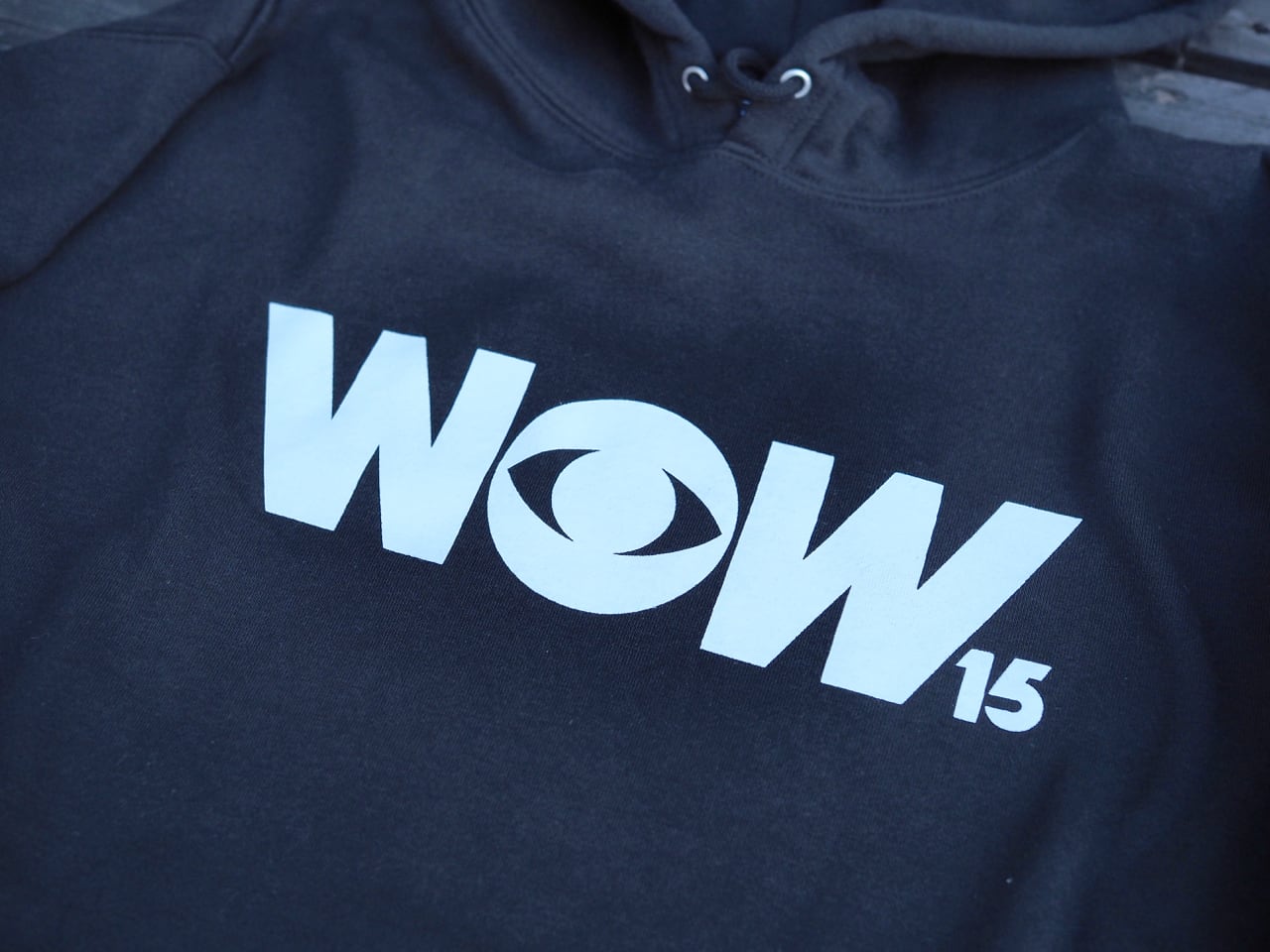 フロントにはWOWロゴの左下に小さく「15」が付いた15周年ロゴ、バックプリントにはWOWクループリントの特別ヴァージョンです!